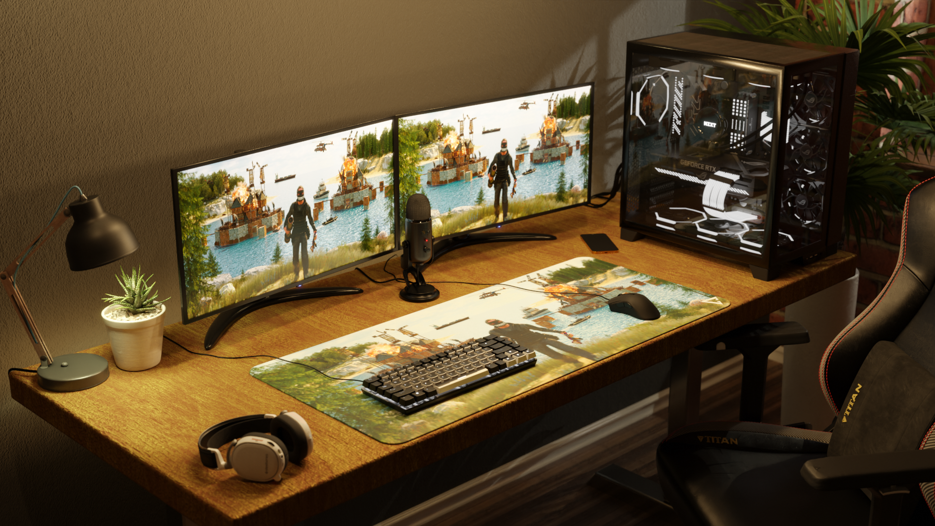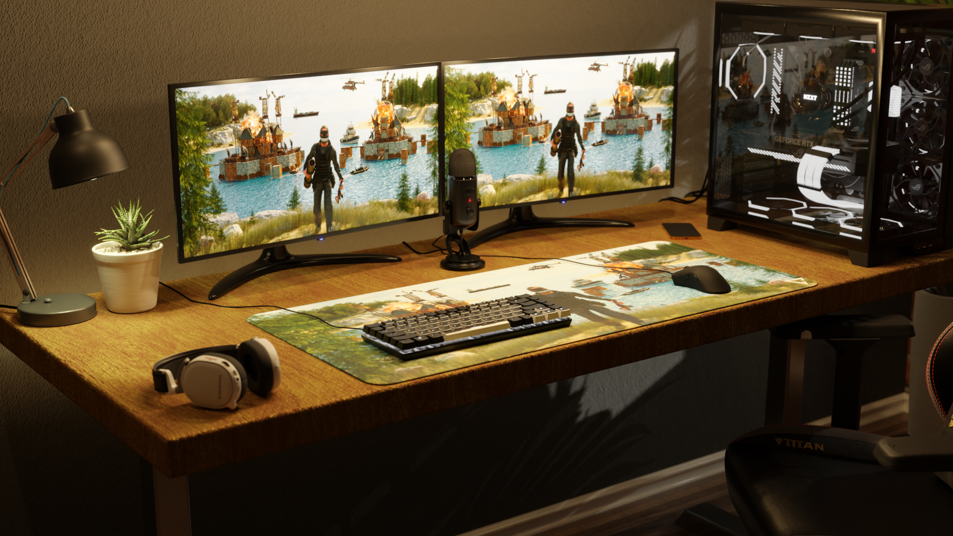 Kujunduse keskseks tegelaseks on populaarse Big Grin näomaskiga sõdalane, kes on räsitud lahingust ning proovib võimalikult suure koguse varandusega pääseda. Tema taustal on kaks baasi, mis on mõlemad leekides ja mille üle käib parsjagu intensiivne võitlus.